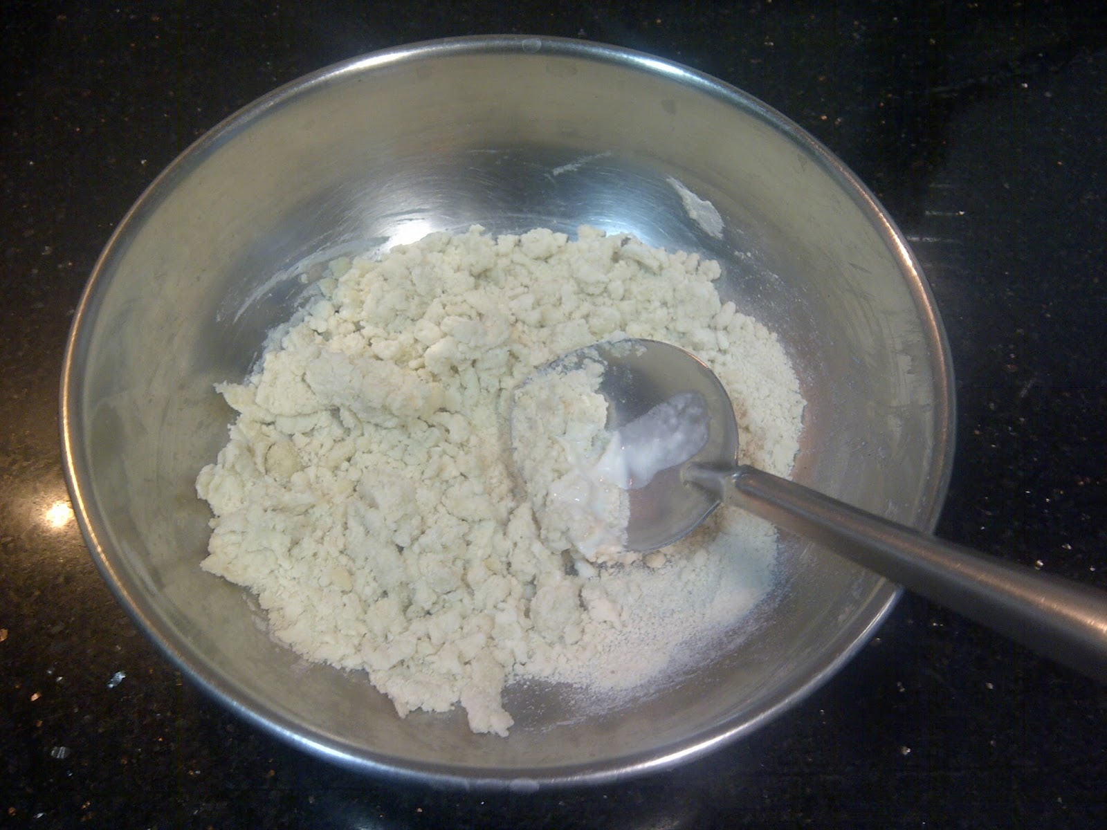 Take Semolina and all-purpose-flour (maida) in a mixing bowl. Add salt to taste. Then pour hot ghee (Moan) on the flour. Knead it using sour curd. Add approximately 2-3 tablespoons of curd. You may adjust the quantity of curd as required. Knead a tight dough and set it aside for 45 minutes to one hour.